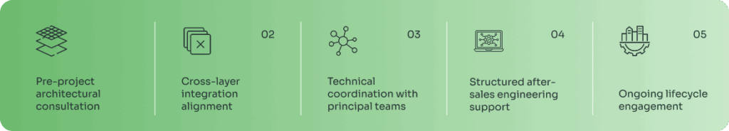 Industrial systems fail when architecture becomes fragmented. A structured automation ecosystem enables: